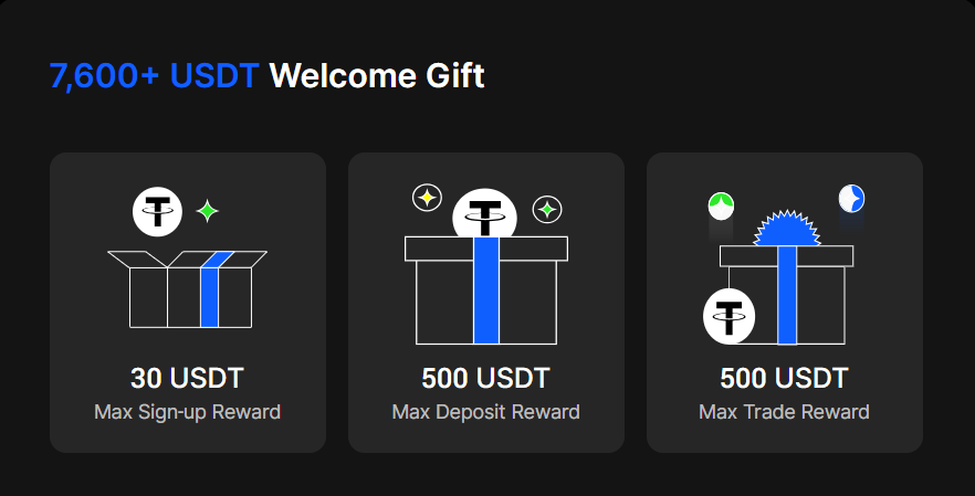 đ Claim a massive 7600 USDT welcome gift plus unlock exclusive perks worth over 1,000 USDT by completing simple tasks!