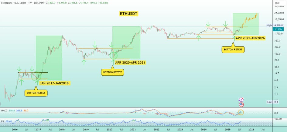Every cycle, ETH retests a major low⊠then goes vertical.